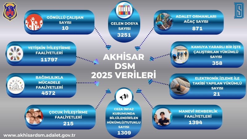 Akhisar Denetimli Serbestlik Müdürlüğü, 2025 yılı boyunca yürüttüğü çalışmalarla hem yükümlülerin topluma yeniden kazandırılmasına hem de sosyal faydanın artırılmasına önemli katkılar sundu. Açıklanan 2025 yılı verileri, müdürlüğün çok yönlü ve etkin bir hizmet anlayışıyla faaliyetlerini sürdürdüğünü ortaya koydu.