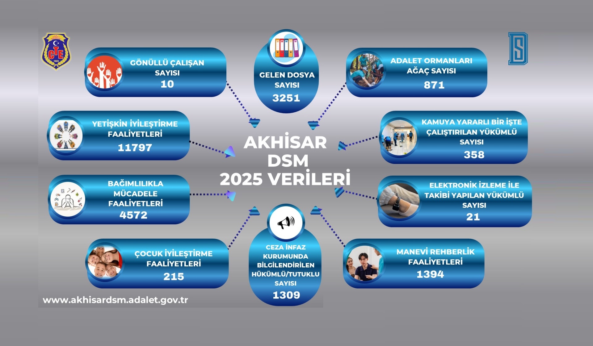Bu kapsamda yıl içerisinde 3.251 dosya müdürlük tarafından işleme alındı. Çalışmalara 10 gönüllü aktif olarak destek verirken, yükümlülerin kişisel ve sosyal gelişimlerini desteklemeye yönelik 11.797 yetişkin iyileştirme faaliyeti gerçekleştirildi. Bağımlılıkla mücadele alanında ise 4.572 faaliyet hayata geçirildi.